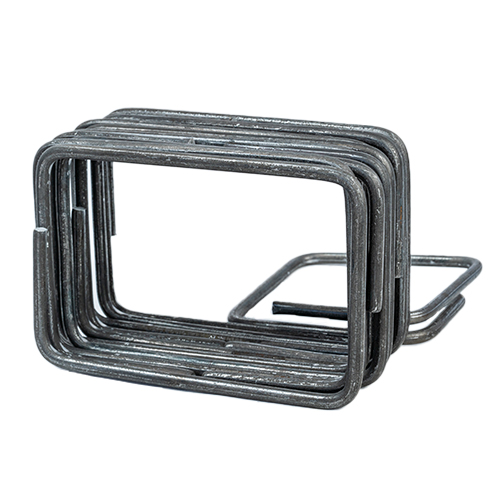 Objeto formado por una barra de acero que ha sido doblada uniformemente y cortada hasta obtener una forma rectangular de 10×15 cm.